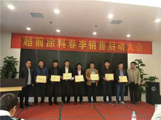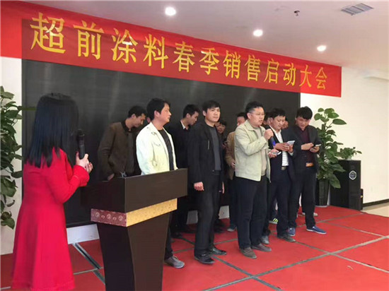 超前涂料 CCTV黃金展位合作伙伴超前涂料在建筑涂料行業(yè)已有16年,為凝心聚力重新開始挑戰(zhàn)新的一年,閻運(yùn)鋒閻總組織召開了2017年超前涂料春季銷售啟動(dòng)大會(huì)。